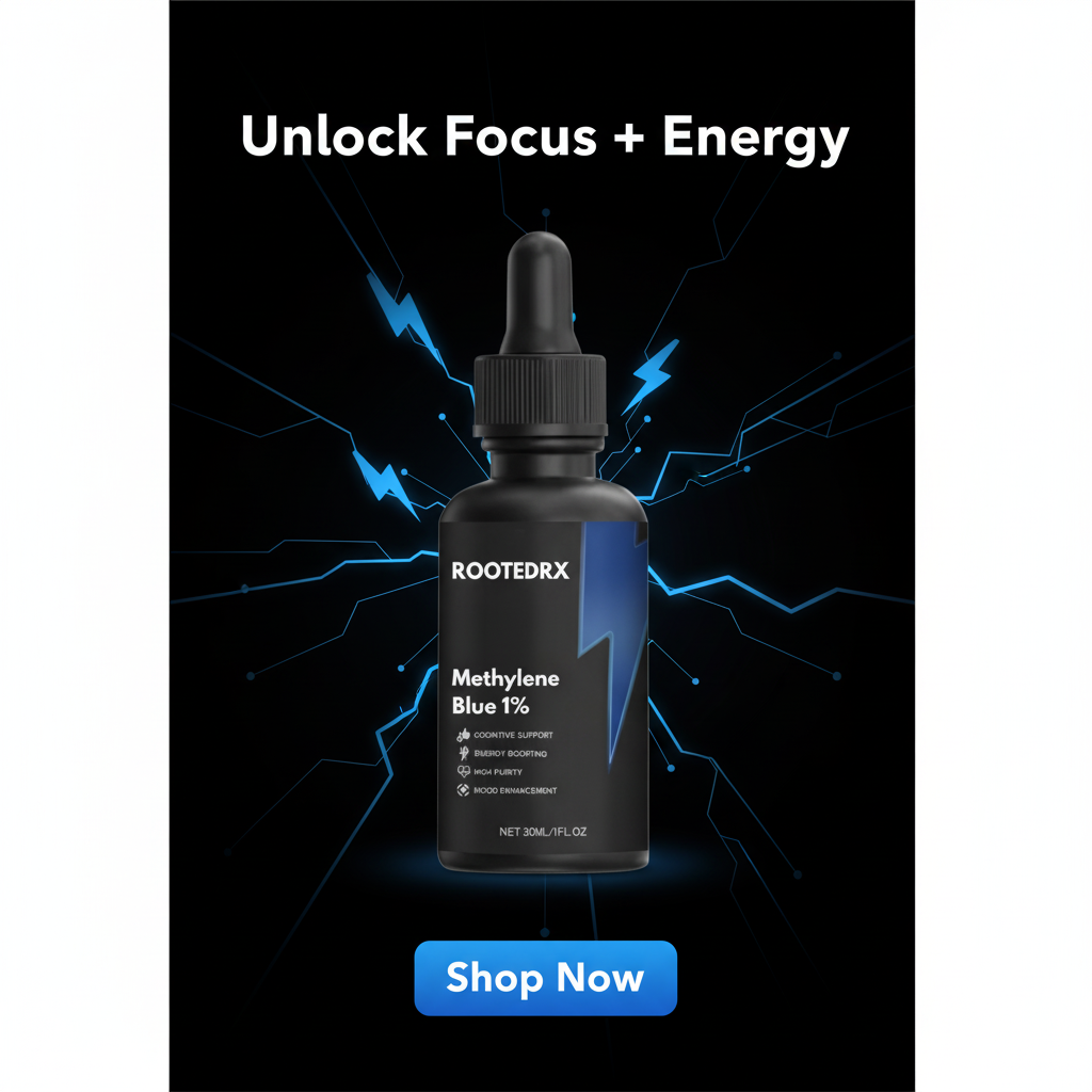 Experience the focused power of RootedRx™ Methylene Blue 1% solution. Crafted with clinical precision and purity, it provides targeted support...